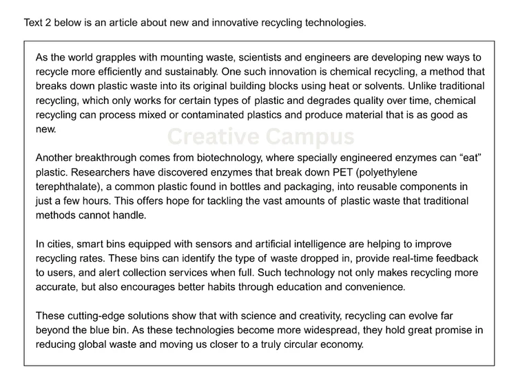 - Text 2 – A short text relevant to the same theme, which could be an article excerpt, review, comment, or testimonial.